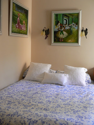 But while I don't finish a quilt for our bed, we bought a new case for the Nordic with blue flowers and white embroidered cushions, beautiful!!!!!!!!!!!!!